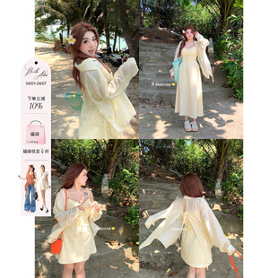 织物猪 异域公主 甜美度假风碎花吊带连衣裙女夏日穿搭开衫两件套