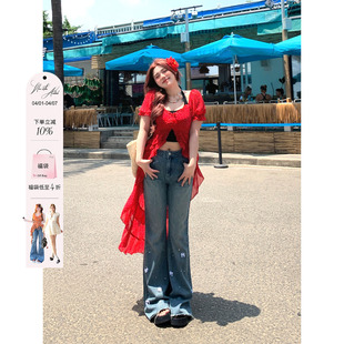 安妮不火度假风开叉红色连衣裙女2026夏季新款微胖大码不规则裙子